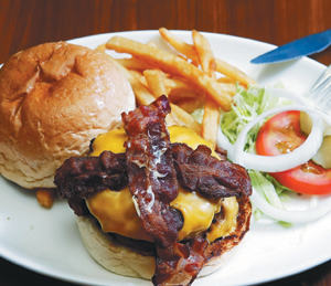 巨無霸牛肉漢堡:手打澳洲進口紐約客牛肉,雙倍牛肉和雙倍起司,給你雙倍美味。附薯條、可樂飲料無限續杯。280元