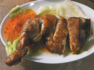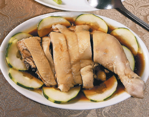 海南雞腿飯:雞腿經烹調後冰鎮,讓肉質更具咬勁,再浸泡在蠔油中,搭配清爽的黃瓜,更顯鮮嫩。90元